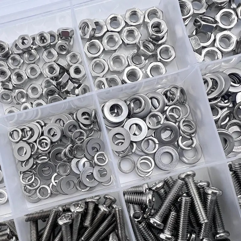 Complete Fastening Solution: Every screw has its matching nut, spring washer (to prevent loosening from vibration), and flat washer (to distribute load).