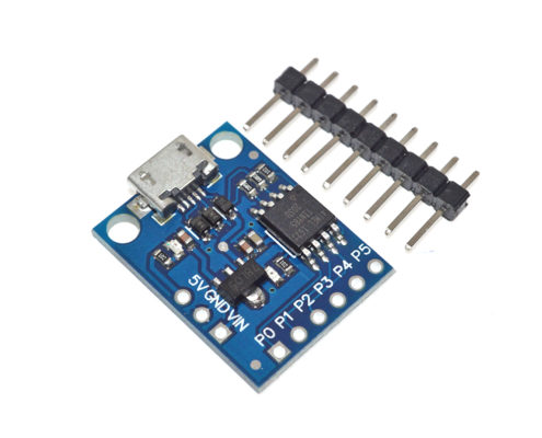 The Attiny85 based microcontroller development board similar to the line, cheaper, smaller and a bit less powerful.