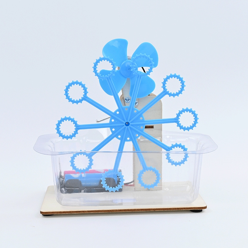 DIY Wooden Bubble Machine Kit STEM Educational Toy Hand Crank Generator Science Project