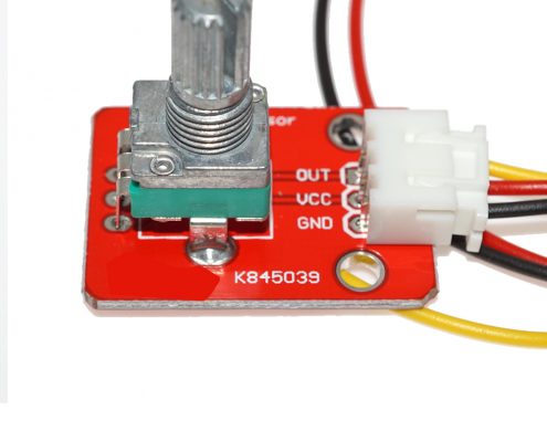 This module is ideally suited to adding rotation measurement and a method of input to a project. This is a module that features a potentiometer with a 6mm shaft and 270 degrees of rotation. When connected to an analog pin of a microcontroller, it is possible to read position of the potentiometer as a proportion of the VCC used.