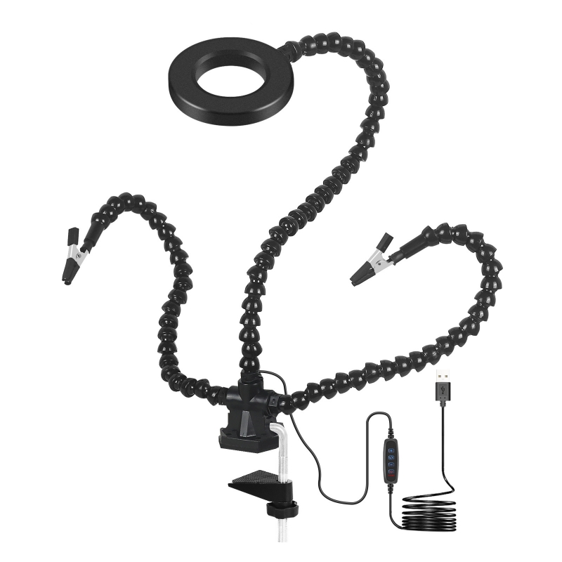 LED Illuminated 3 Jaw Welding Assistance Clamp 360° Adjustable Holder for Precision Welding Tools