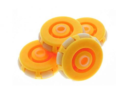 Omni-directional wheels are useful as they roll freely in multiple directions on the rollers mounted around their circumference. They are great for use with skid steering robots as they allow for a change in direction while maintaining the original orientation.